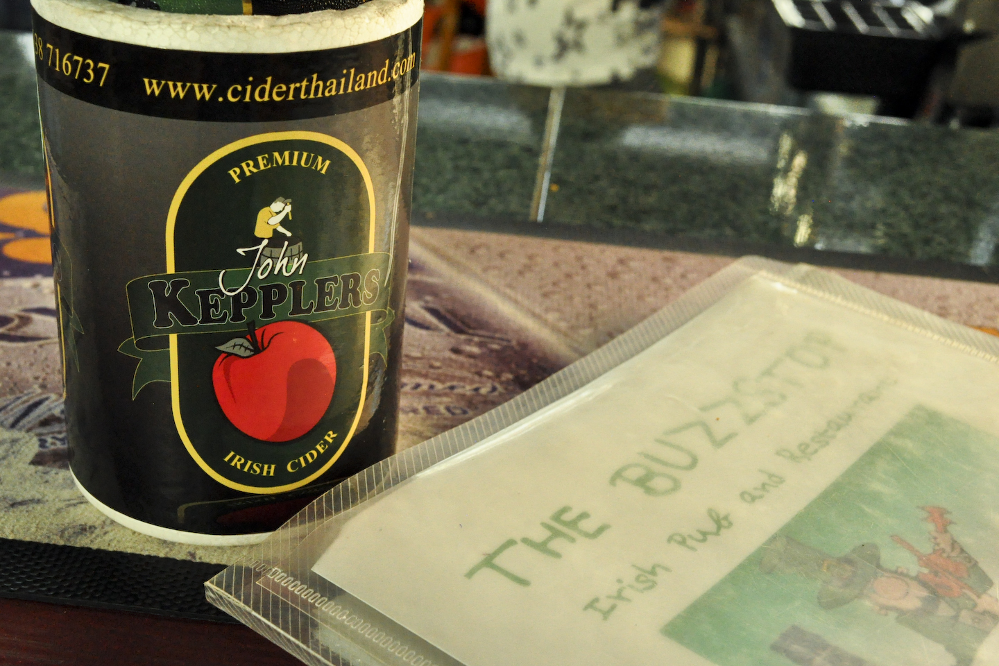 Took us quite a walk to catch the tuk-tuk to the clock tower. Ten baht each. It was one of the trucks with a set route. Fortunately, the route took us where we wanted to go. Perfect. Got on a yellow and green striper. Thirty baht instead of the 28. We took it all the way to Thanon Si Suda, where the Buzz Stop is. When we got there, it was all greetings and fun. Also found out that George does a full Christmas dinner there for free. I think this will be my new haunt. There was a funny Scotsman named Martin there who spent the evening heckling George and all the rest of his staff. Pretty sure he was a regular We ordered ciders (lovely, tall, Irish ciders). They weren’t Bulmers but they were nearly as good. Had a ‘Slainté!’ to living in Songkhla.