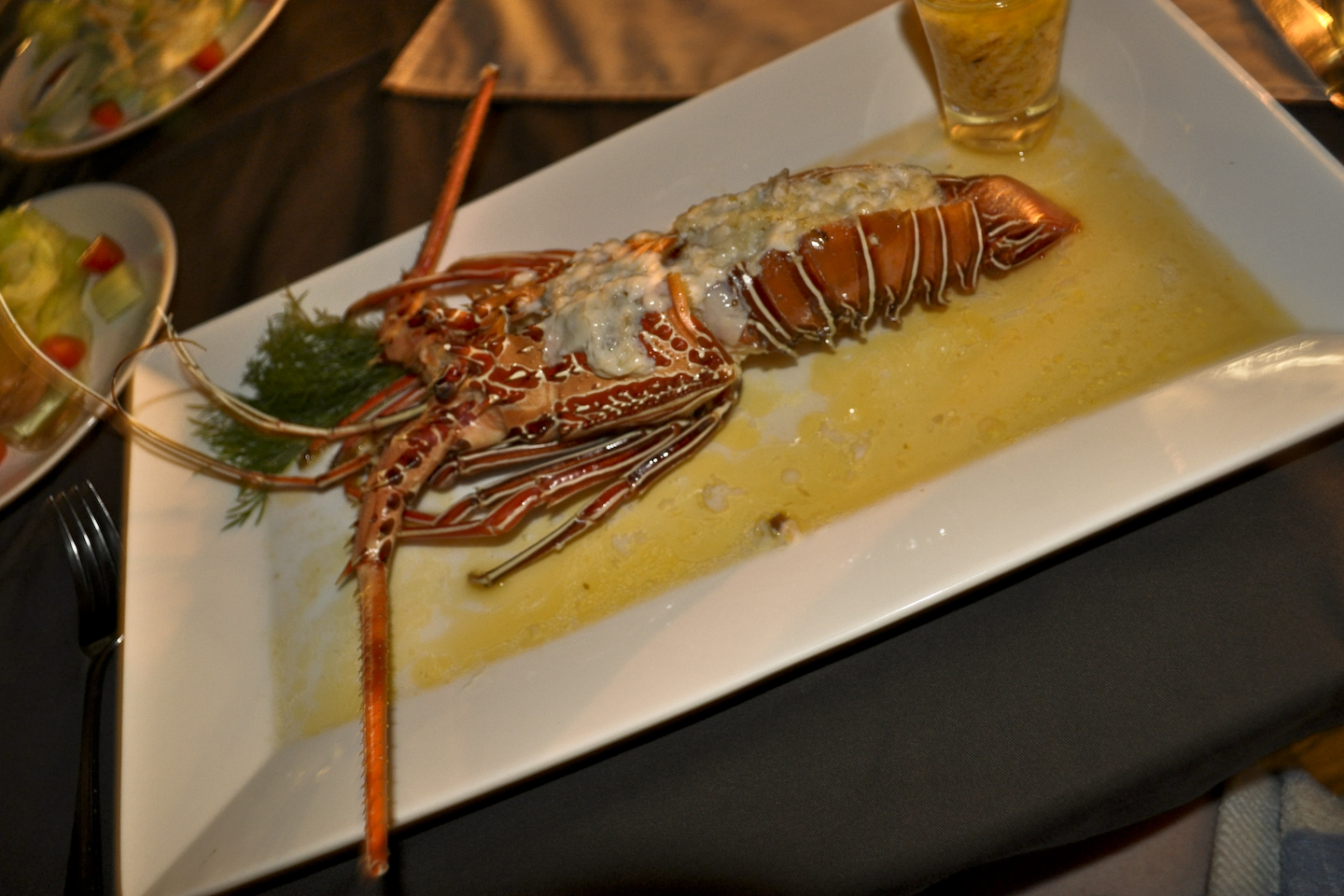 Had a beach-side infinity pool with an in-water bar. We paddled around and had some pina coladas. Then we dried off and ordered white wine from a box and lobster steamed in garlic and butter.