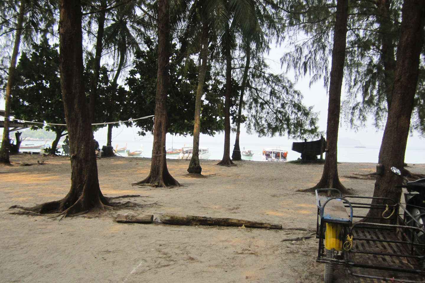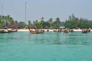 When we finally arrived in the archipelago, I couldn’t believe how clear the water was. You could see the dark reefs under the perfect, still, turquoise sea. All the long-tail boats were lined up along Sunrise Beach against the snow-white sand. I knew we were going to get wet getting off the boat. There was no pier. It made me laugh to myself because some of the Thai women on this boat were totally dolled up. High heels, jewelry from head to toe. I was wearing a Jersey cotton maxi dress so I wasn’t worried about getting wet. In fact, I quite looked forward to it. The boatmen formed a line from ship to shore and passed the luggage to the beach.