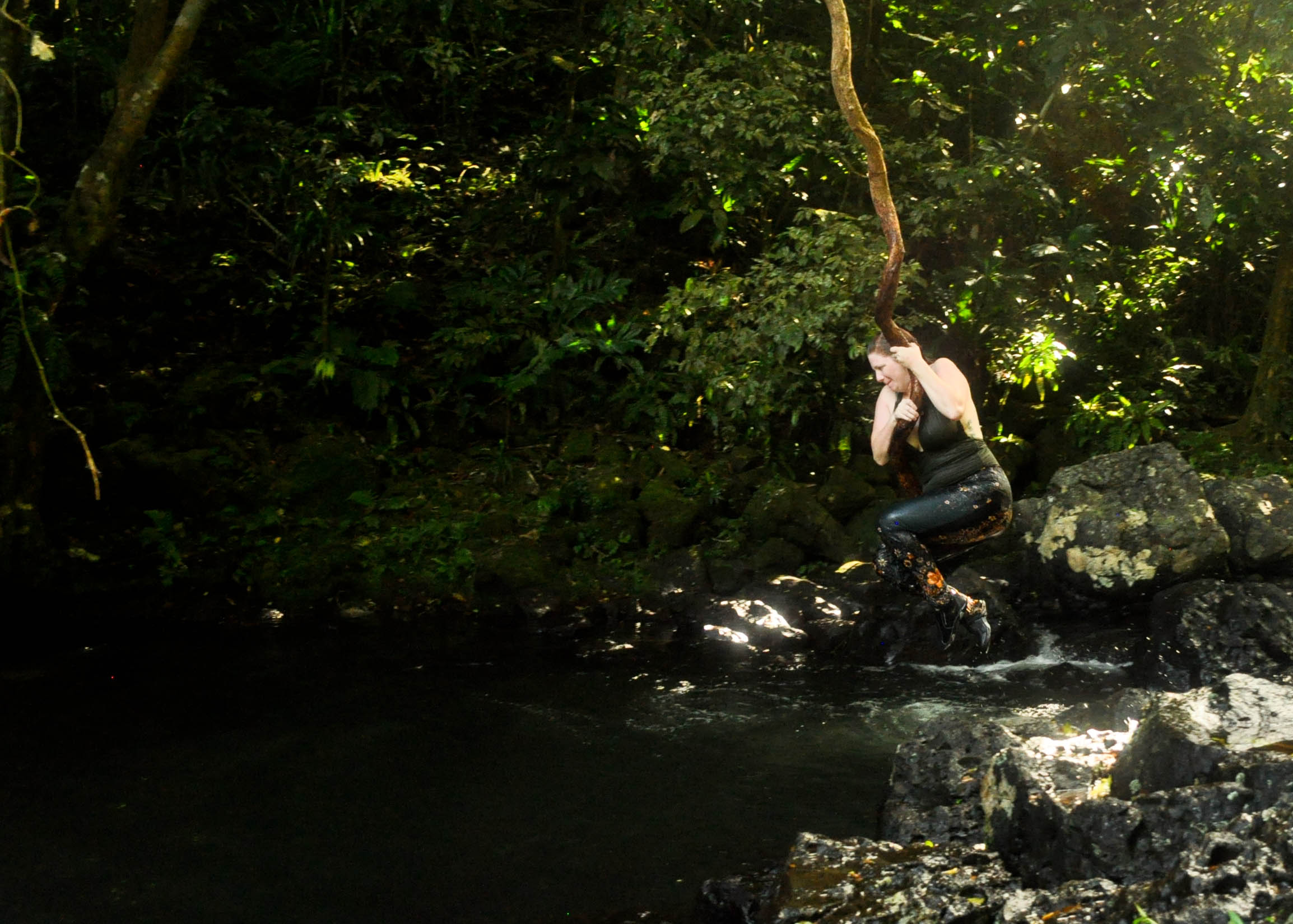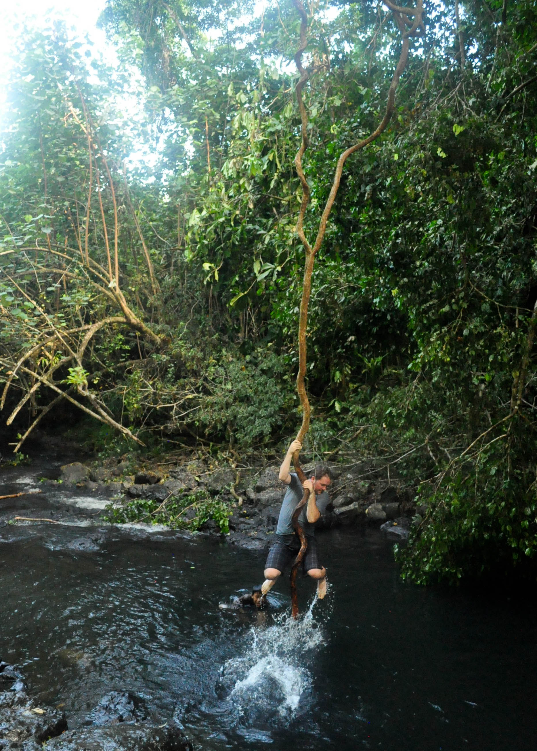 When we were hiking in to the falls, there were kids in the river, swinging from a long, thick vine and dropping in to the water.