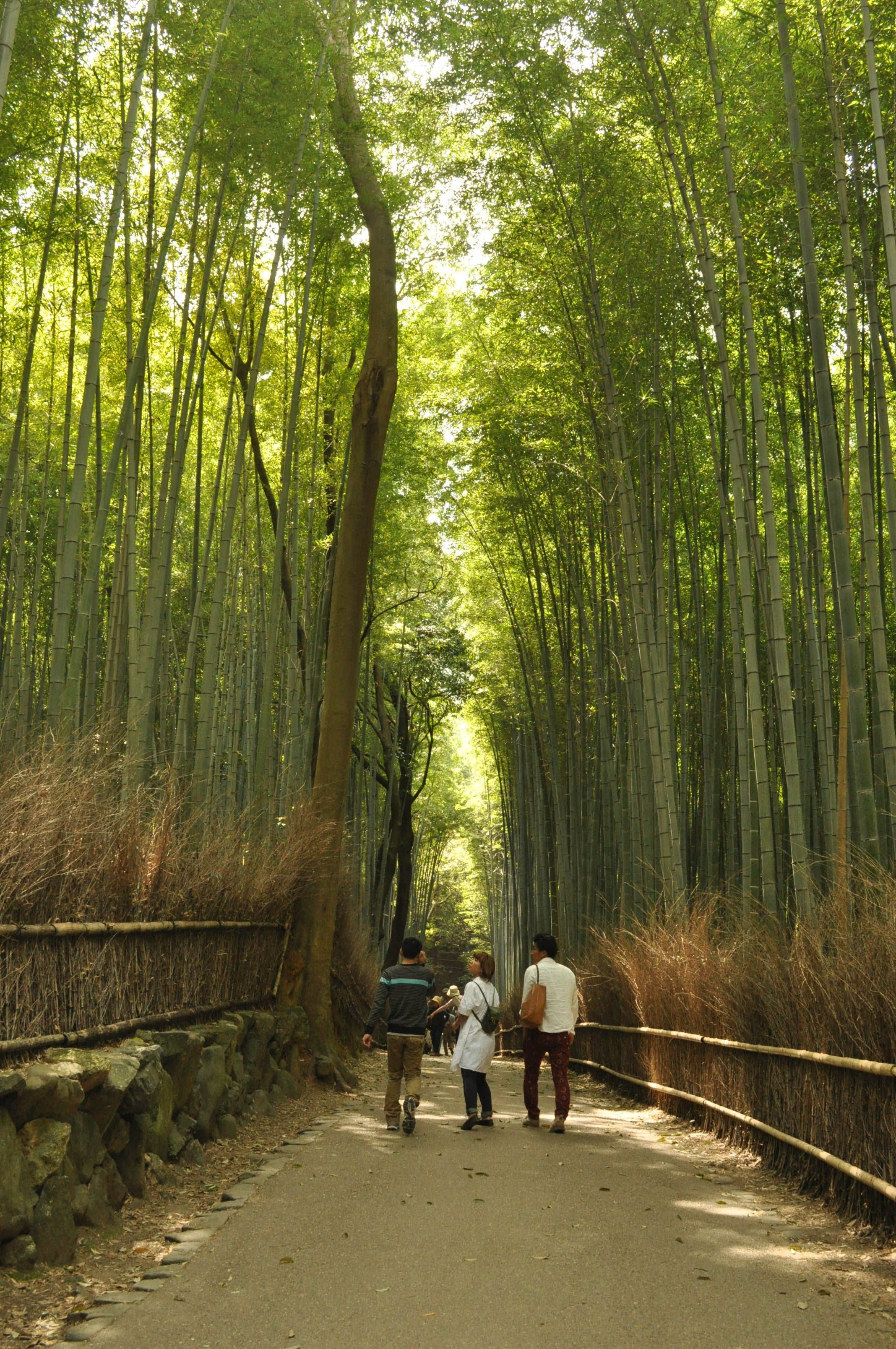 forest and not concentrate on my bike, we parked them at the Tenryuji temple and continued in to the grove on foot. It really is more of a grove than a forest and won’t take that. Extremely tall with foliage at the top. There is a neat concrete path wending through with thatch fences along the sides to prevent errant wandering in to the woods.