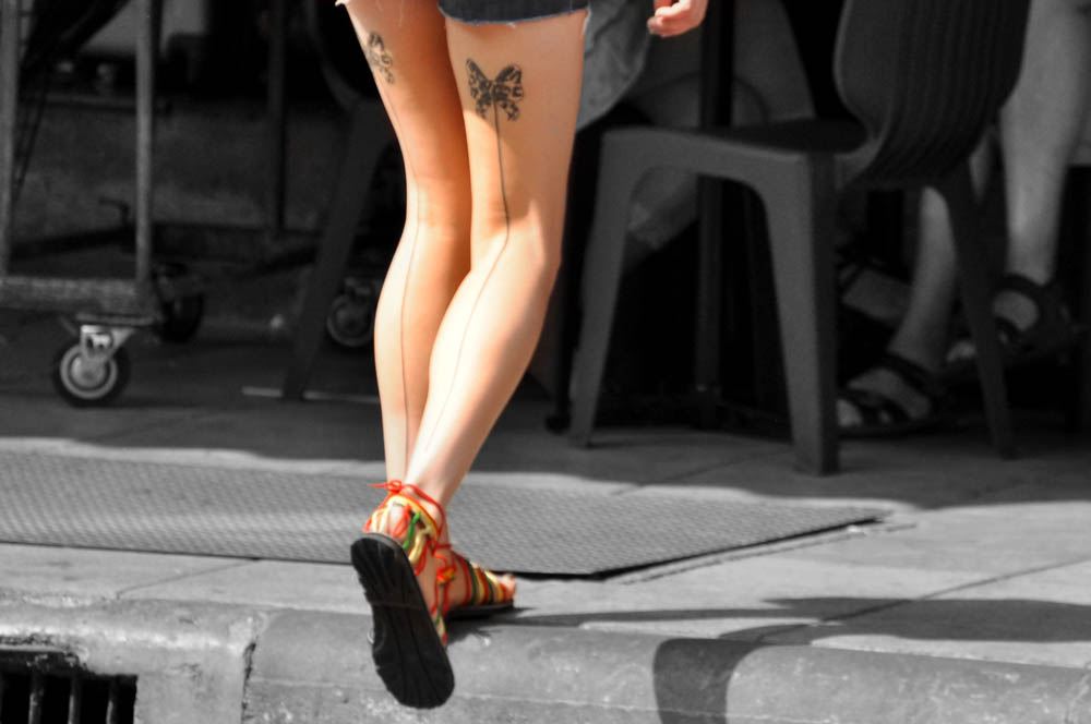 bangkok, bow tattoos, bows, interesting tattoos, khao san road, people watching, tattoo. leg tattoos, thailand