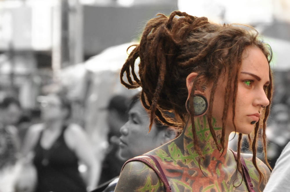 bangkok, body modification, dreadlocks, eye dyeing, eye tattoo, green eyes, khao san road, people watching, stretched ears, tattoo, thailand